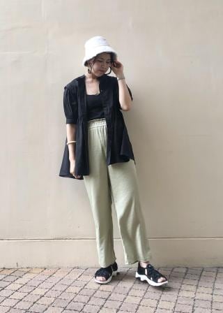 細いパンツとのコーディネートに加え、ハーフパンツやタイトスカート合わせもおすすめ。