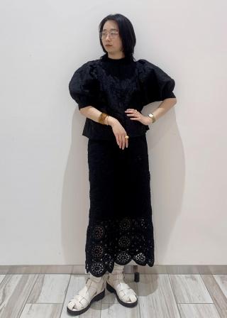 程よい透け感のレース調のジャガード素材のブラウス。
