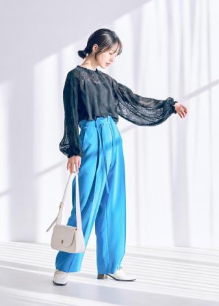 テーパードパンツやフレアスカートに合わせたキレイめスタイルがおすすめ。