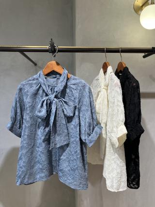 ボウタイ付きシアージャガードブラウス