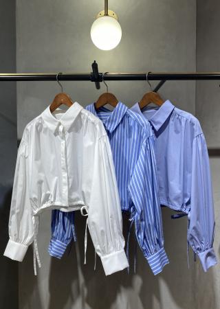 ハイウエストボトムと合わせた時にスタイルが良く見えるようにハリのある素材を使用したシャツです。