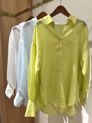 スタイリングに華やぎを持たせる透け感のあるストライプ素材です。