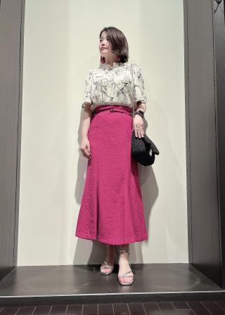 ・肩にシャーリングが入ったデザインでとろみ素材に動きを出しました。