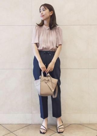 ・肩にシャーリングが入ったデザインでとろみ素材に動きを出しました。