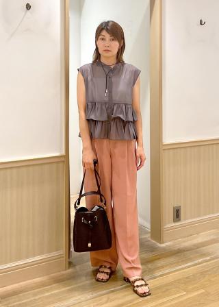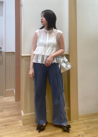 透け感と少し肩にかかるくらいのノースリーブが上品ですし、パンツにもスカートにも合う形なので、とても使いやすいブラウスです。
