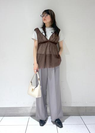 ・甘さを抑えたチュール素材のフロッキードットが着映え抜群なブラウス。