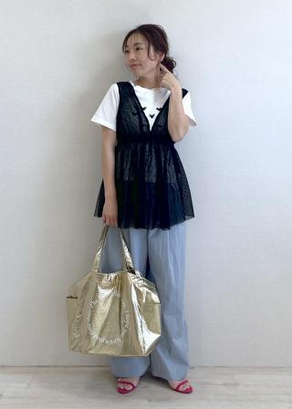 シアー感が涼しげで、シンプルなTシャツに重ねていただくと一気にオシャレなスタイリングになります。