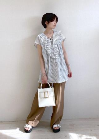 ワイドパンツやショートパンツ合わせがオススメ。アウト・インスタイルでも印象が変えられます。