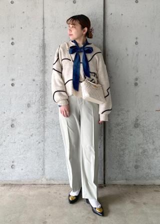 女性らしく見せてくれる袖のボリューム感がポイントです。