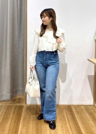 ワイドパンツやデニムと好相性。フロントに華やぎがあるのでコートインにしてもしっかり映えます◎