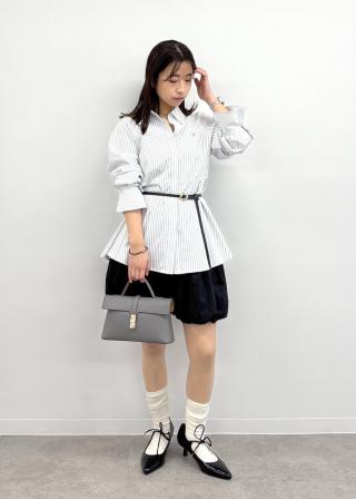 ウエストマークのペプラム切替が女性らしさ引き立つシャツブラウス。