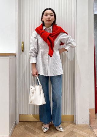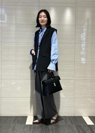 ベストをレイヤードして裾を出すスタイリングや、フロント釦を開けて羽織りとして着用するのもおすすめです。