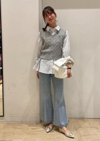 ベストをレイヤードして裾を出すスタイリングや、フロント釦を開けて羽織りとして着用するのもおすすめです。