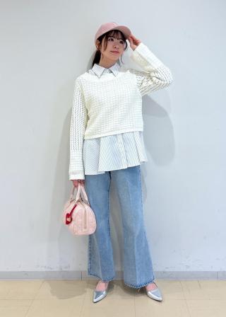 ワンポイント刺繍が可愛いので一枚着でも良いですが、ニットのインナーに着てレイヤードスタイルにもおすすめ◎