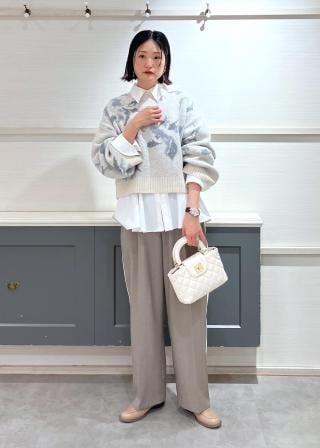 ベストをレイヤードして裾を出すスタイリングや、フロント釦を開けて羽織りとして着用するのもおすすめです。