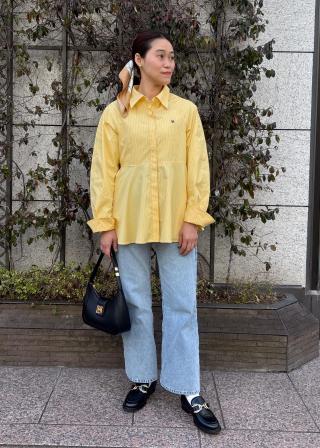 ウエストマークのペプラム切替が女性らしさ引き立つシャツブラウス。