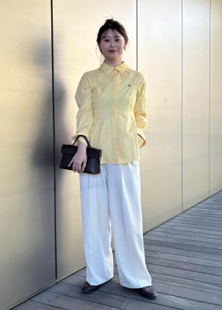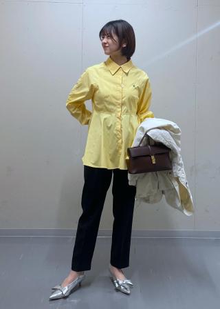 ウエストマークのペプラム切替が女性らしさ引き立つシャツブラウス。