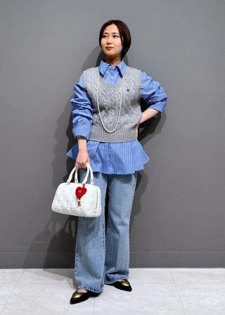 ベストをレイヤードして裾を出すスタイリングや、フロント釦を開けて羽織りとして着用するのもおすすめです。