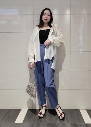 シアー素材なので、トップスとしてインナーとのレイヤードを楽しむのはもちろん、前を開けて羽織りとしても使えるのでロングシーズンで着回しいただけます。