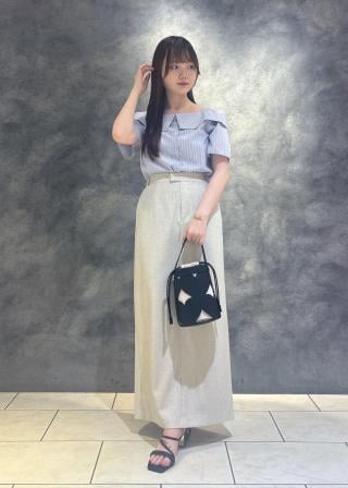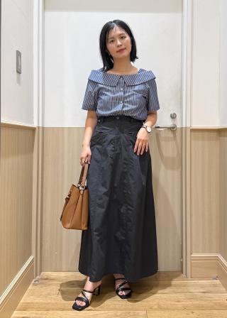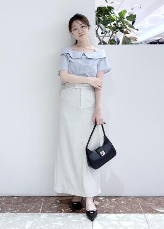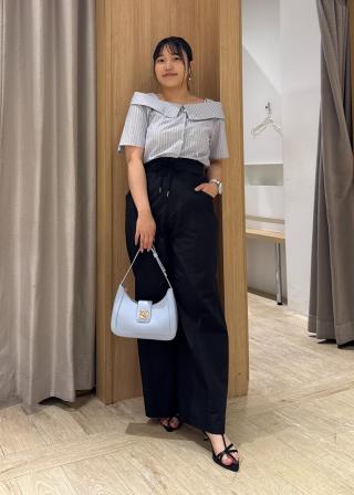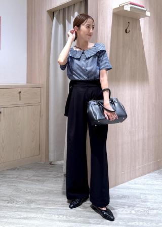 キレイ目シーンではインスタイル+ベルトでメリハリを出すことで、通勤やお出かけシーンでもきちんと感をイメージできるスタイリングが完成します。