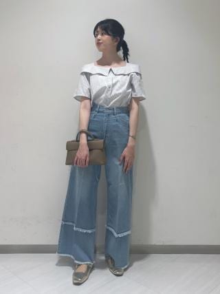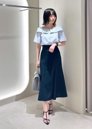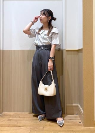 オフショルダーに挑戦したいけれど肩を前面に出すのは少し恥ずかしい、、という方にぜひ選んでいただきたい肩に生地が乗るようなデザインのブラウス。