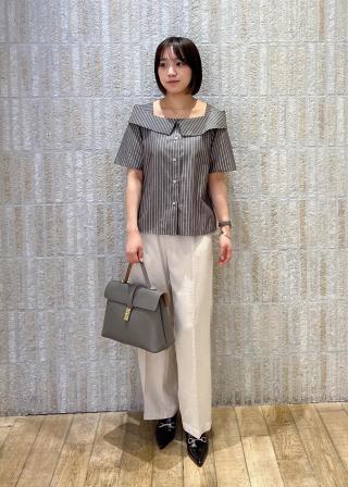 ハリ感のある素材のブラウスでシワになりにくいのも嬉しい◎