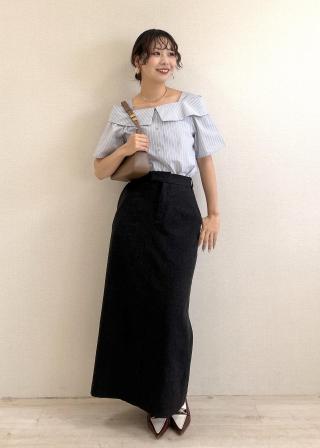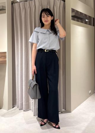 キレイ目シーンではインスタイル+ベルトでメリハリを出すことで、通勤やお出かけシーンでもきちんと感をイメージできるスタイリングが完成します。