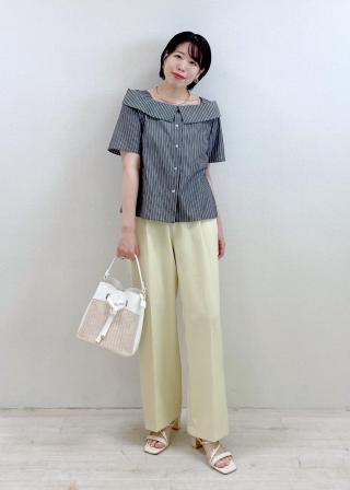 ハリ感のある素材のブラウスでシワになりにくいのも嬉しい◎