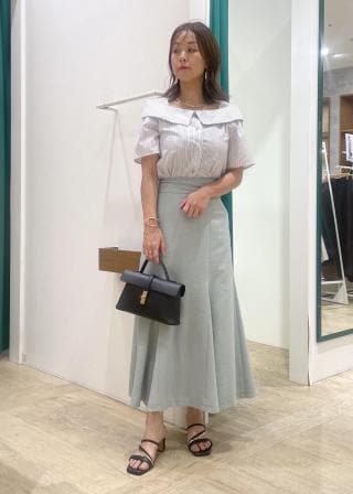オフショルダーに挑戦したいけれど肩を前面に出すのは少し恥ずかしい、、という方にぜひ選んでいただきたい肩に生地が乗るようなデザインのブラウス。