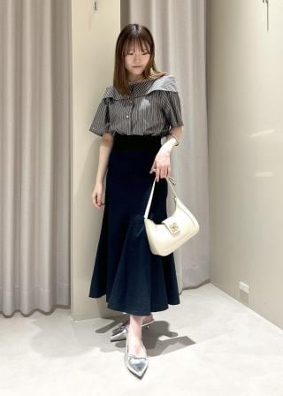 キレイ目シーンではインスタイル+ベルトでメリハリを出すことで、通勤やお出かけシーンでもきちんと感をイメージできるスタイリングが完成します。
