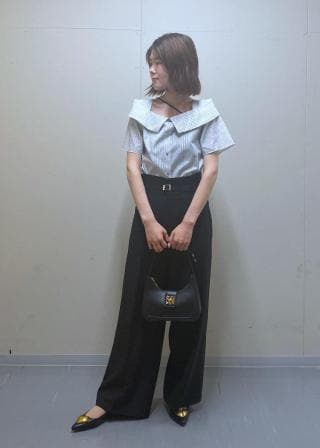 ハリ感のある素材のブラウスでシワになりにくいのも嬉しい◎