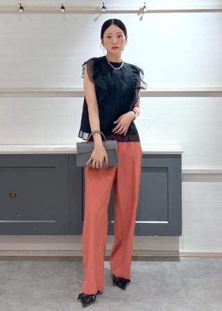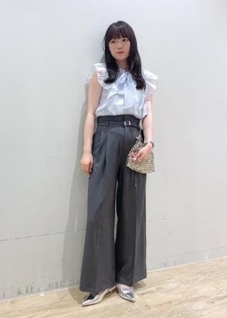 柔らかい印象のブラウスなので、清潔感がありオフィスシーンにもピッタリ!