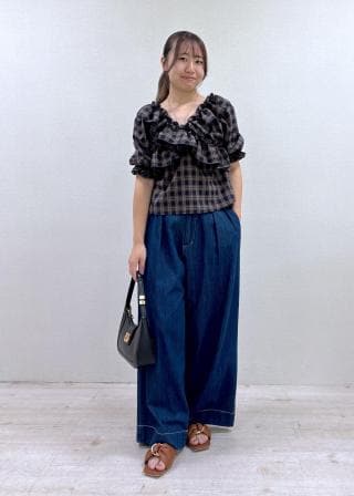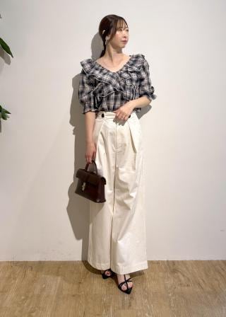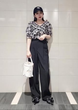 トップスが華やかなのでスカートよりパンツの方がおすすめです。