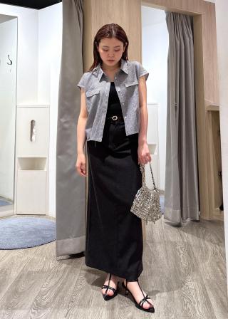 アウトが決まるタイプのコンパクトなトップスなのでボトムにボリュームを持たせてあげると、バランスよくスタイルアップできます。