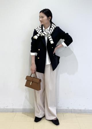 一枚で羽織としてもおしゃれ感を演出してくれるので、ワイドパンツにさらっと羽織ってお仕事服としても合わせやすくなっています。
