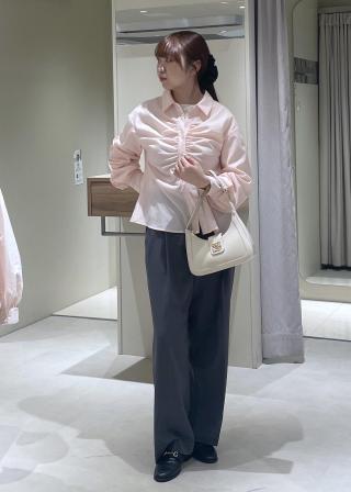 昨今ずっとトレンドのシャツアイテムは羽織ではなくトップス使いが増えてきました。春物を買いたい季節に重ね着もアウターのインナーとしても華やぐようフロントにギャザーデザインをほどこしたことと、オーバー過ぎないコンパクト目のサイズ感にしたことで万能使いできるようにしました。ウエストを細く見えるようなシャープなフォルムにしているのもポイントです!オケージョン使いも新生活にもぴったりです。