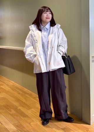 アウターレイヤードしたときに袖口の配色ポイントや、1枚で羽織りとした時には前立てが配色になっていてかわいいです。ホワイトのみ仕様そのままのオールホワイトになっているので、ボタンを黒配色にしてポイントをいれています。またバックリボンで絞り具合を調整できます。