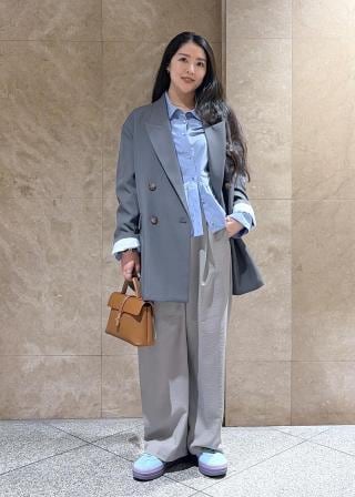 ペプラムシルエットは長すぎない丈感でパンツ、スカートにも合わせやすいです。華やかな雰囲気ですが、程よくコンパクトなシルエットなのでジャケットの下にも着用しやすくなっています。