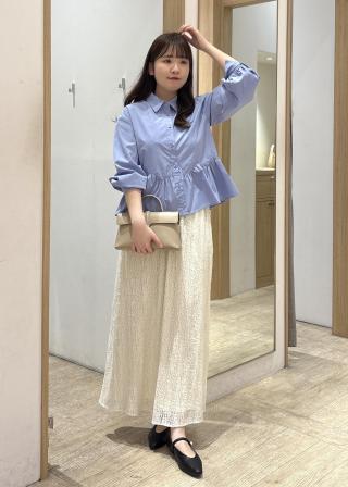 ペプラムシルエットは長すぎない丈感でパンツ、スカートにも合わせやすいです。華やかな雰囲気ですが、程よくコンパクトなシルエットなのでジャケットの下にも着用しやすくなっています。