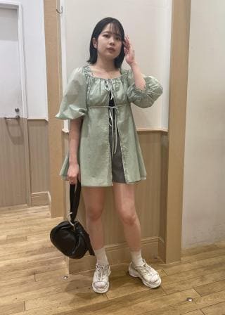 ショートパンツをあわせ、ワンピース見えで着用してもイメージが変わり着こなしの幅が広がります。