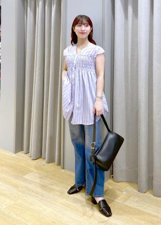 着丈長めで気張らず楽ちんかわいいが叶うブラウス。 シャリング部分はスッキリ見せる効果もあり、裾に向かってやや広がるシルエット。