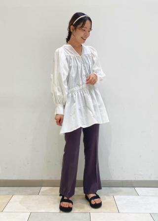 薄めのコットンを使用しており、暑い時期に肌にまとわりつかないサイズ感にしたブラウス。
