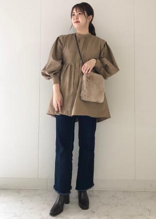 【洗える】ふんわりボリューム。ピンタック袖ボリュームチュニックブラウス