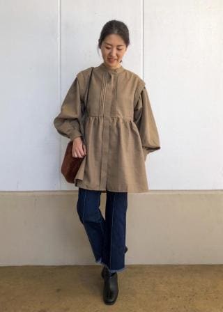 ワンピース風の着こなしや、ロングブーツとの合わせもトレンド感があり可愛い!