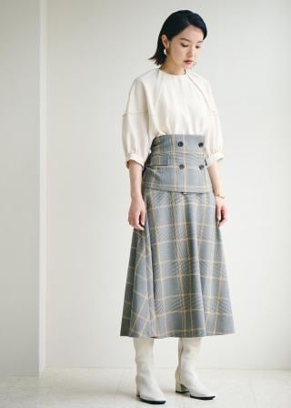 切替のデザインが可愛く、立体的なブラウスでテーパードやフレアスカートとの相性抜群です。