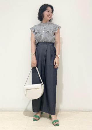 フリルの甘さはしつこくなく、すっきりとしたパンツ合わせとの相性が良いです◎