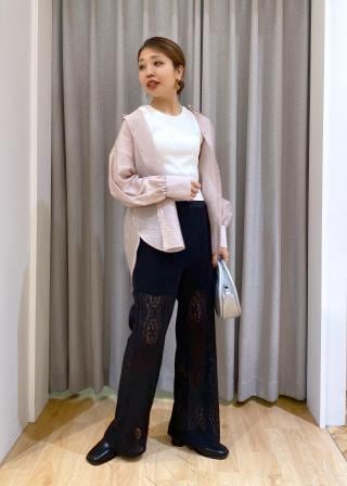 インナーにカラーキャミやTシャツとの合わせでシアー感を楽しむコーデがおすすめ!