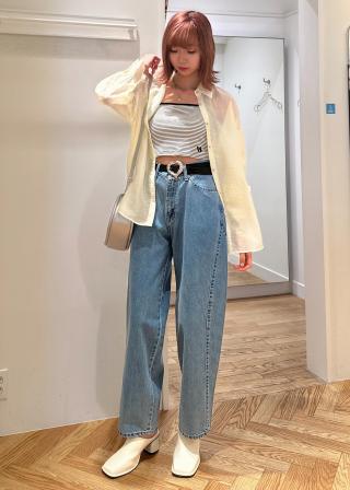 インナーにカラーキャミやTシャツとの合わせでシアー感を楽しむコーデがおすすめ!