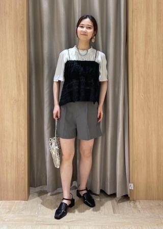 ・肩にシャーリングが入ったデザインでとろみ素材に動きを出しました。