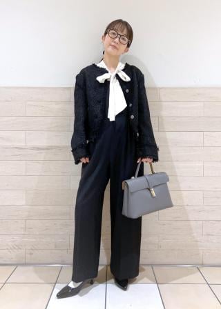 ジレ合わせのスタイルも今年らしいスタイリングに。2WAYで印象も変えられるので後ろにリボンを持ってくるスタイルもイメージを変えて着用可能です。